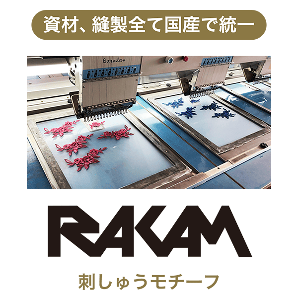 - 山茶花をイメージしたムカラ刺しゅうがアクセント