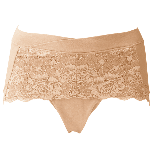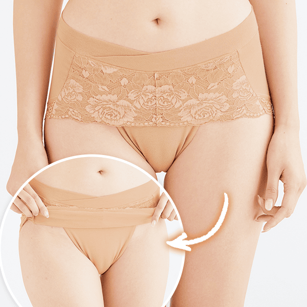 色も上品なグレージュでレースのおかげで見た目は普通のショーツと変わりません。