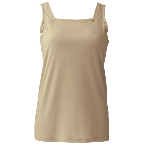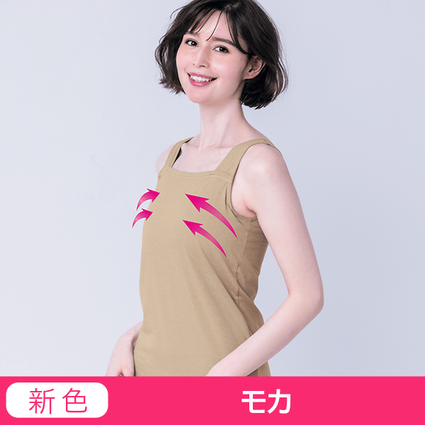 - パット見た感じでは普通のタンクのように見えますが、実際には広めの1枚型のブラトップで、バストをすっぽり包んで収めてくれます。春夏に薄手のトップス着用する際など、インナーにサラっとこれ一枚を着用していれば、透けやチラ見え、バストの揺れなど、バストまわりのお悩みを何も気にせず快適に過ごせそうです。
