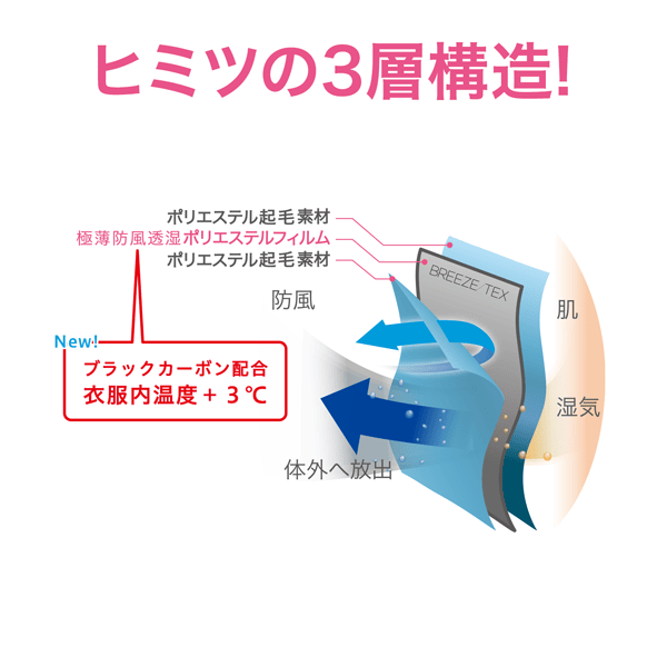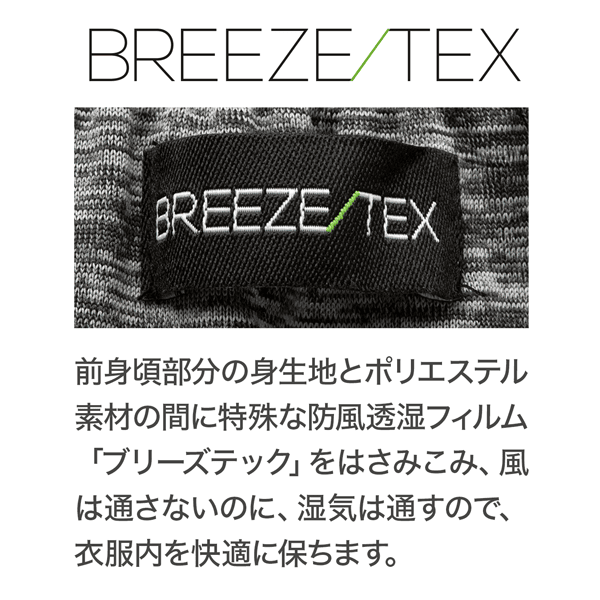 - 特殊な防風透湿フィルムで冷たい風を通さない