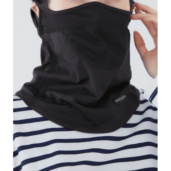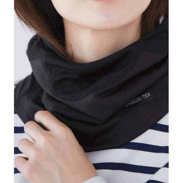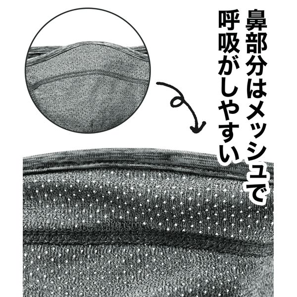防風透湿フィルムを内蔵した特殊構造で、向かい風でも顔まわりあったかなネックウォーマー。鼻部分はメッシュで呼吸がしやすいです。