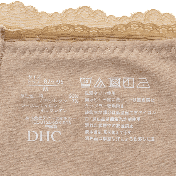 - 素材/身生地:綿93% ポリウレタン7% レース部:ナイロン ポリウレタン クロッチ部:綿100%