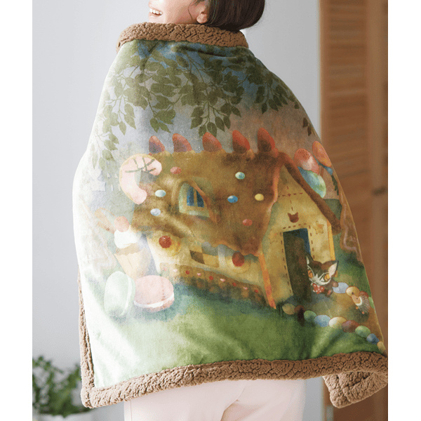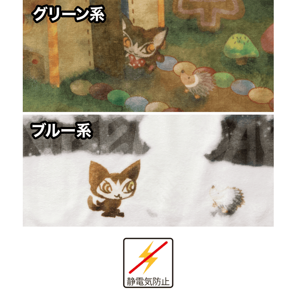 - 時空を旅する猫のお人形べべダヤン柄のブランケット