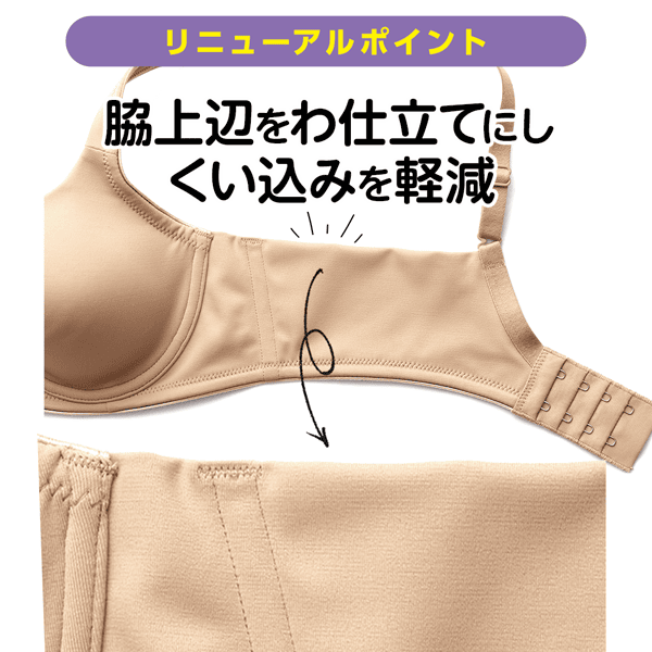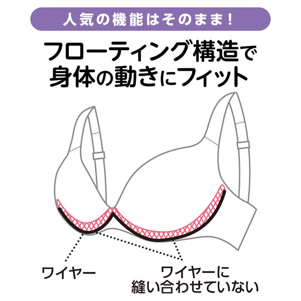 ワイヤーがあたる、きれいな胸の形がキープできない、そんなお悩みを解決する大人気ブラがさらにグレードアップ!これまで通りの優れた機能は変えず、脇がくい込みにくく段差レスになり、さらに着用感がアップしました。こんなにも長い間変わらず愛されている理由が、着ければ必ずわかるはず。ぜひ実感してみてください!