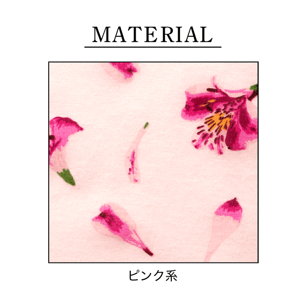 みずみずしい印象のアルストロメリアの花を、綿混のやわらかなカットソー素材にプリントしました。やさしく快眠をお手伝いします。