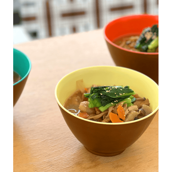 軽くて丈夫な“TRIBECA PLAWARE”シリーズの大きめボウル。麺類から丼もの、汁ものまで使えます。漆器職人によってひとつずつ再現されたリアルな木目調が美しく、カラフルな4色はDHCオリジナルカラーです。