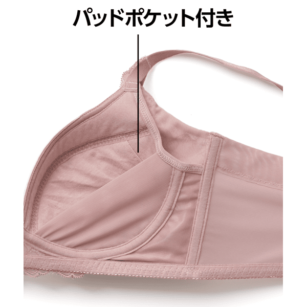 - しっかり広い面積の脇高で気になる脇肉がきれいに収まります。ノンワイヤーはバスト横の膨らみが出てしまうのが気になっていましたが、バスト横の膨らみも程よく押さえられ、全体的にすっきりと見えます。