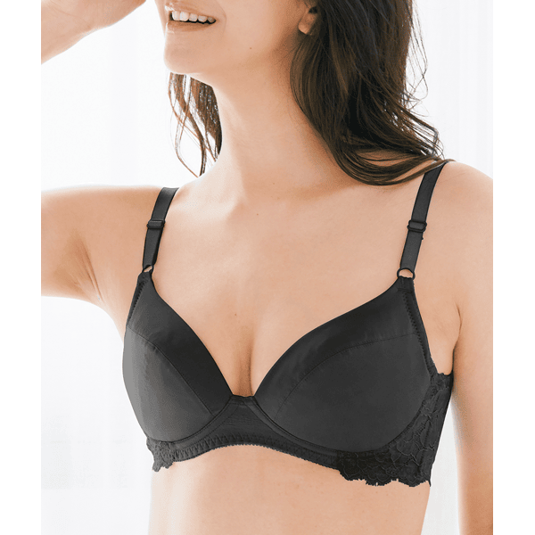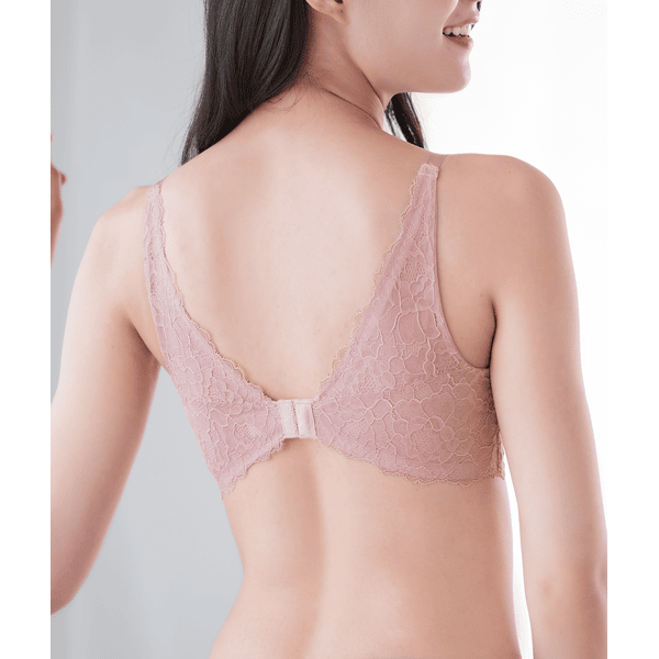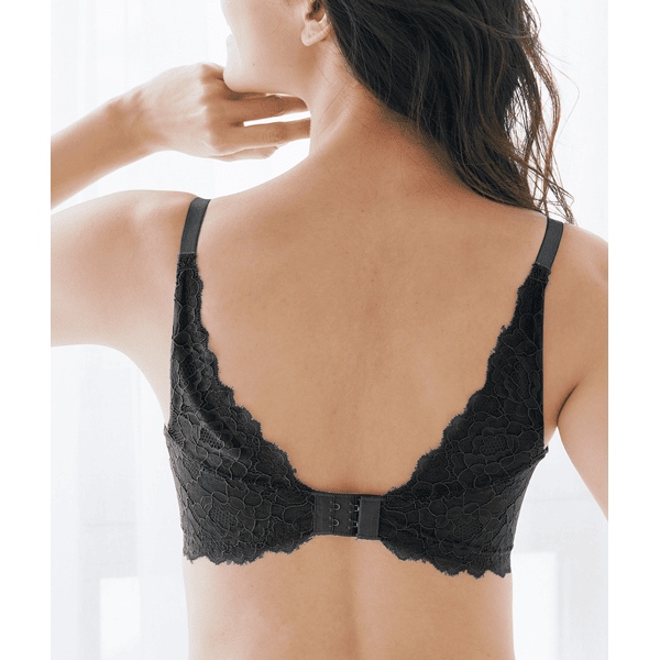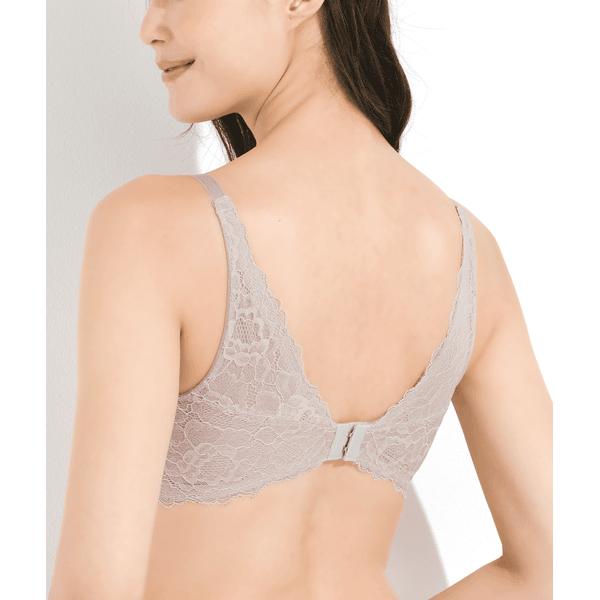 - カップ部分はシンプルでアウターにひびかず、背中部分はエレガントなレーシーパネルで背中のお肉を綺麗に見せてくれるので、とてもスッキリと着用できました。使いやすさとデザイン性を兼ね備えていて、使用頻度がとても高くなりそうなブラだと思います。いつものサイズを選んだところ、ぴったり着用できました。