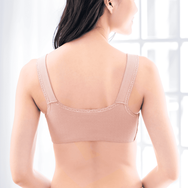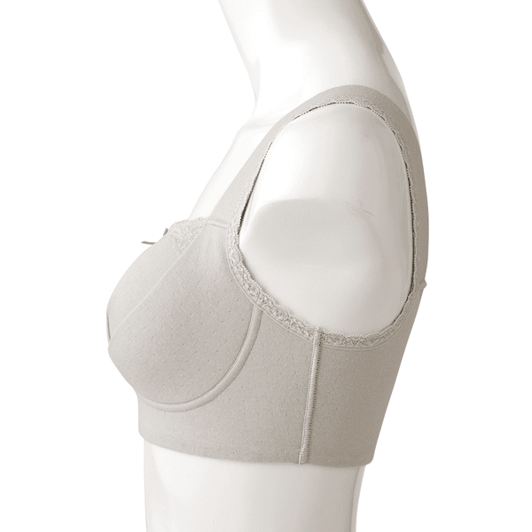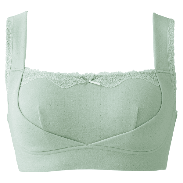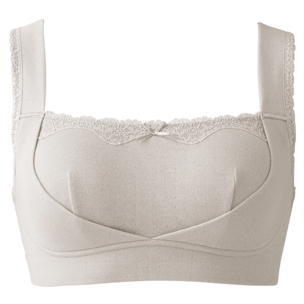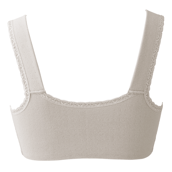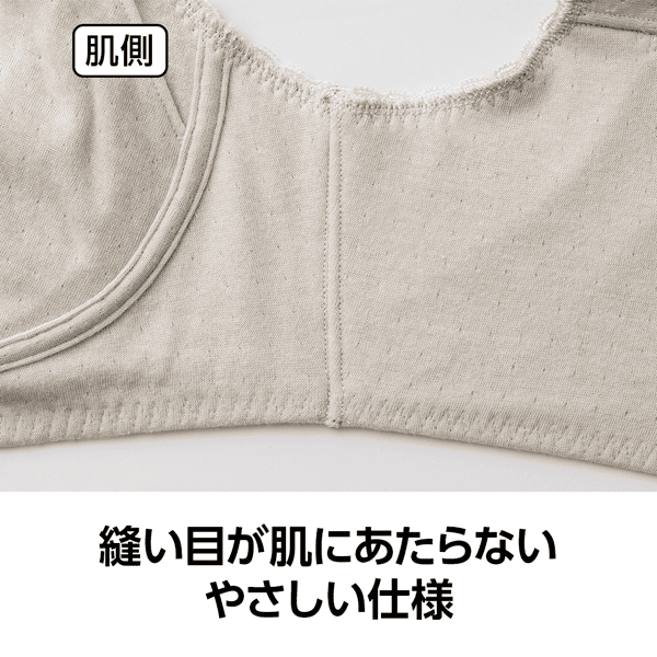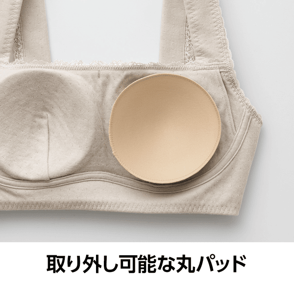 - ややふっくらとした綿100%ならではの肌当たりの良さで、ゴロつきやすい縫い代も外側で肌に当たらないようにしている優しい仕様です。以前の「癒しのふわっと・ブラ」よりも生地感とパッドがほどよくしっかりした感じがします。左右のフロントパネルの大きさも相まってバストの横流れを押さえてくれるホールド感があり、生地と仕様の優しさだけではない着用感が嬉しいです。