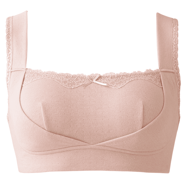 - 綿100%のフワフワしてお肌に優しい素材なので、着用していて気持ちよく快適でした。どこかがすごく当たったり、きつかったりということがなく、長時間着用していても痛くならないと思います。左右のパネルでバストが脇に流れにくい仕様になっているので、バストの良い形をキープできるのも安心です。