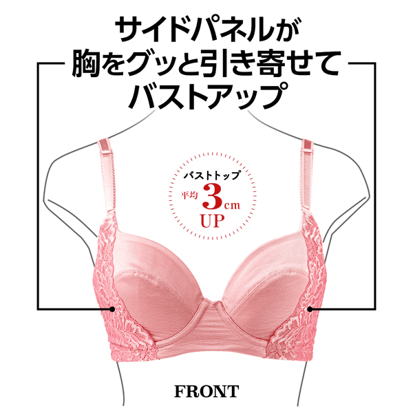 計算されたパターン設計でバストを上向きにするリフトアップブラ。バストトップは平均3cm上がり、乳間は平均2.5cm引き寄せ、着けるだけで簡単に“5歳若見え”がかないます。