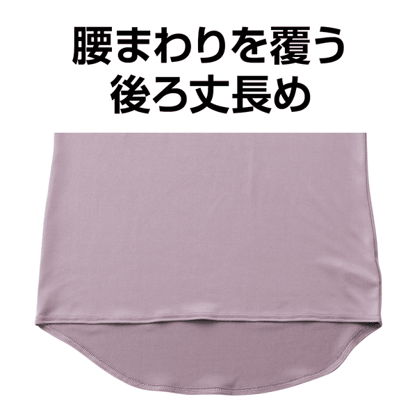 着たときにひやっとしない、肌ざわりのよい両面微起毛素材のインナー。腰まわりを覆う後ろ丈長めなので、かがんでも背中がちら見えしません。