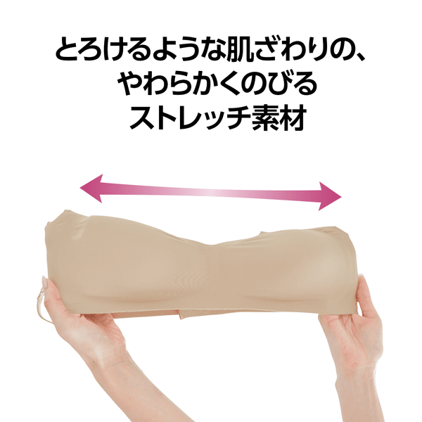 - 生地の端部分も伸びて柔らかく、とにかく肌にストレスとなる箇所がない快適な着用感です。楽チンでありながらも不安定な感じはせず、バストの形もキレイになるので、Tシャツや二ット等のシルエットがでやすいアウターにも合わせやすいなと思いました。