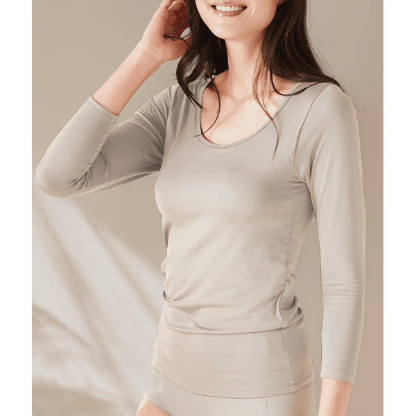 遠赤外線効果と裏起毛であったか!ブラなしで着られるカップインの8分袖