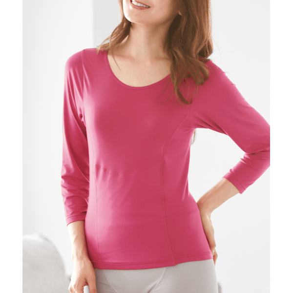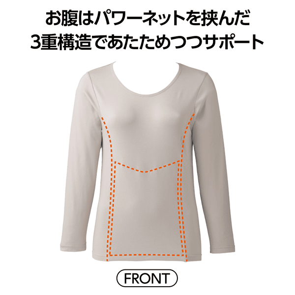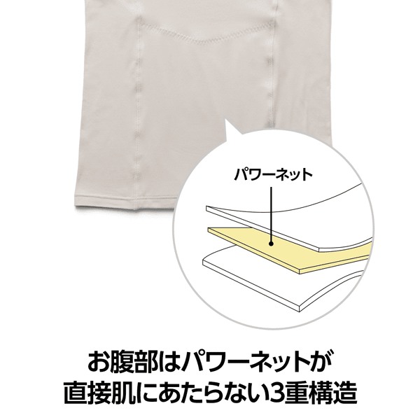遠赤外線効果のある両面起毛素材であたたかく、パワーネットを挟んだ3重構造でお腹をサポート!独自の着やせパターンで細見えする機能性インナーです。