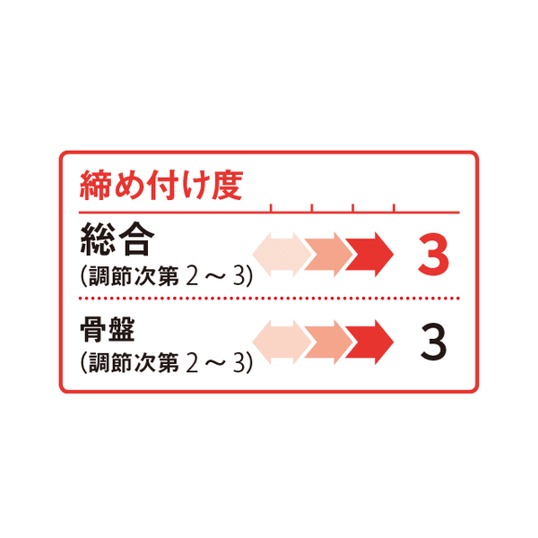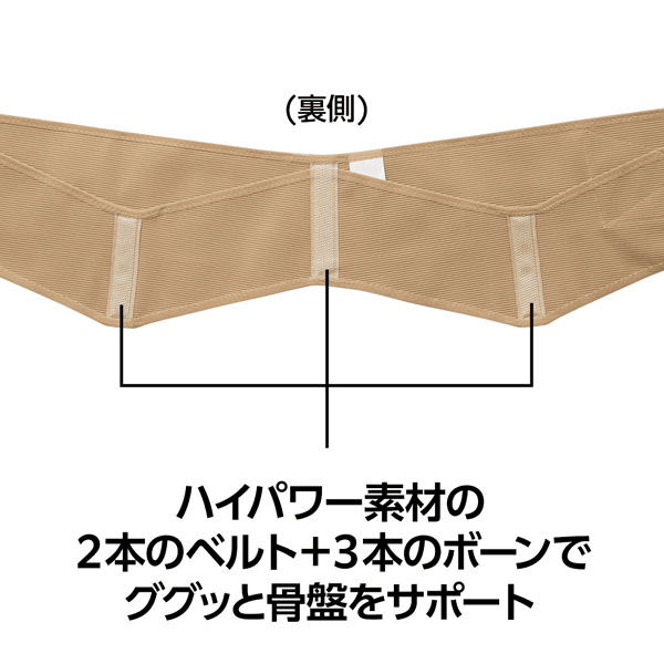 - ハイパワー素材の2本のベルト+3本のボーンでググッと骨盤をサポート