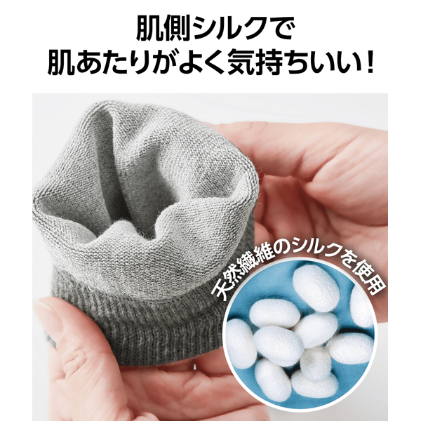 備長炭の遠赤外線効果であたたかなサポーターです。天然繊維のシルクで肌あたりがよく、のびがよくぴったりフィットし、気持ちいい着け心地です。