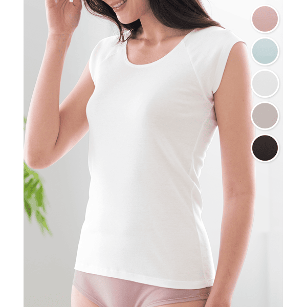 - 衿ぐりや袖口の始末がすっきりと仕上がっていて、腕まわりもゴロつき感なく快適です。程よく身体にフィットするシルエットでもたつき感もなく全体的にすっきりとした着用感です。コンパクトな袖付きなので、ちょっとした脇汗も吸ってくれそうです。シフォンのブラウスの下等はこの形をチョイスしたいです。オーガニックコットン100%がお手頃価格で嬉しいです。