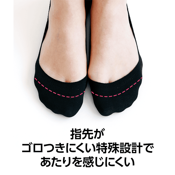 すべり止めに薄くてグリップ力の高い「ポリオレフィン」を採用し、“脱げにくい”から“脱げない”に進化したハイゲージ編みフットカバー。