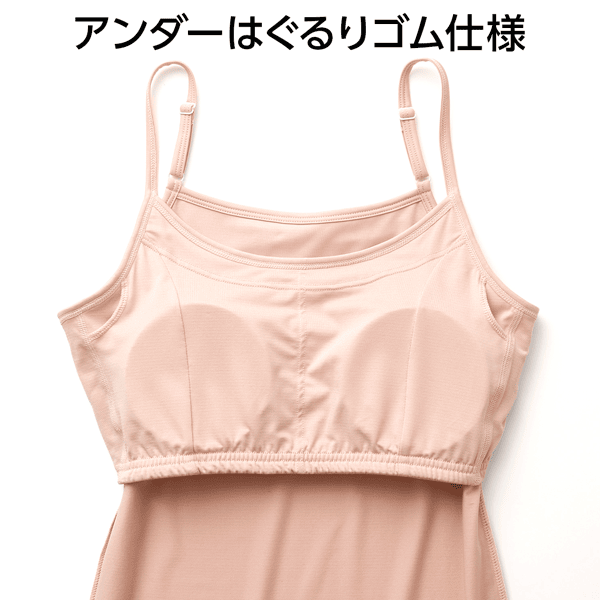 - 伸縮性があり、やわらかくて気持ちいい素材です。ぶ厚くないのでアウターに響かず、すっきりと着用できました。デザインはシンプルでかがんでも背中が出ないくらいの身丈で安心ですし、身体に合わせてストラップ調節できて便利だと思います。ブラが必要ないカップインキャミタイプなので、暑い時季に大活躍しそうだと思いました。吸水速乾・吸放湿・接触冷感・抗菌防臭と多機能でシワにもなりにくいので、数枚購入して毎日使用したいです。