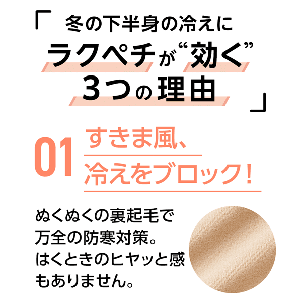 - 裏起毛なのではくときのヒヤッと感がなく、冬の防寒対策にも!