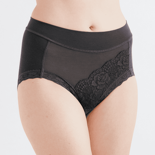 - とてもやわらかく優しい素材で、伸縮するので着用しやすいです。ウエストや太もも部分も食い込みにくい仕様になっており、締め付け感が無く、リラックス感がありました。クロッチ部はもたつくかな?と思っていましたが、身体にフィットする立体構造なので着用しても気になりませんでした。レースがエレガントなデザインなので、一見吸水ショーツ感が無く、普段使いしやすいと思います。