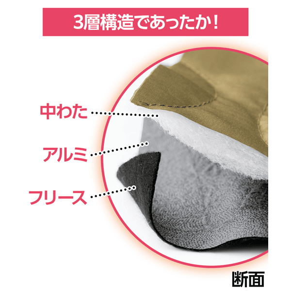 - 中わた+アルミ+フリースの3層構造であったか
