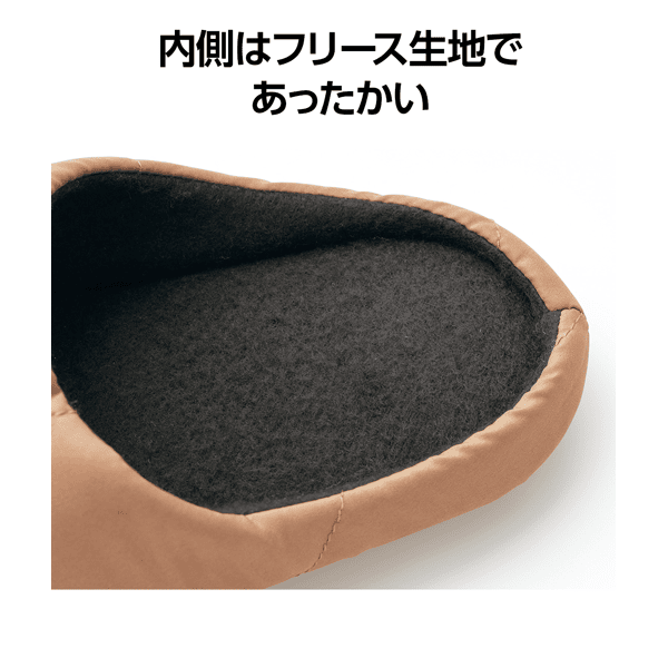 中わた+アルミ+フリースの3層構造であたたかい軽量ルームシューズ。冷えやすい足先をすっぽり包んでくれるので寒い日もあたたかく過ごせます。