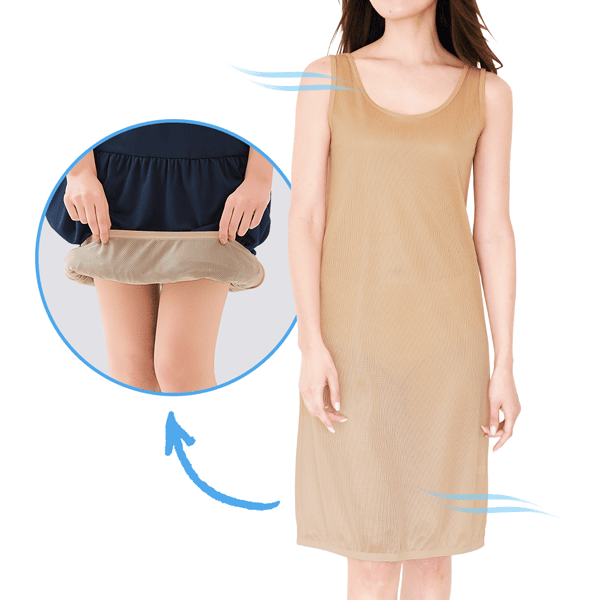 大人気のメッシュ素材ラクペチにワンピース用が登場!ワンピースのベタつきやトイレの困った!を爽快メッシュでさらっと解決します。