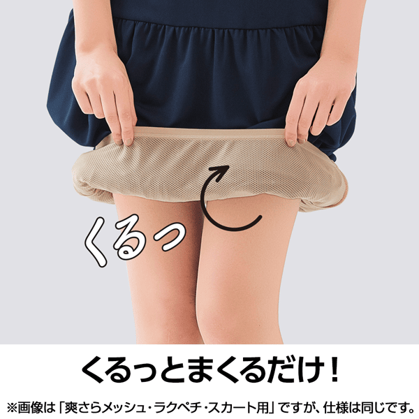 - アウターのデザイン、素材により、裾をまくり上げても留まりづらい場合があります。その場合は、アウターとラクペチを共に、裾を数回折り返してください。