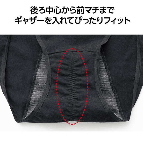 - 後ろ中心から前マチまでギャザーを入れてぴったりフィット