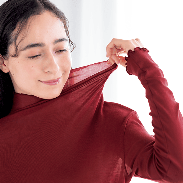 夏の紫外線や汗のダメージで、肌は思っている以上に敏感に。乾燥も重なり、肌のバリア機能が低下すると、洋服の繊維さえストレスに感じることも。そんなときは、この極上の着心地を持つインナーをぜひ。やわらかく、なめらかな生地が、デリケートな肌をやさしく包み込み、心地よく守ります。