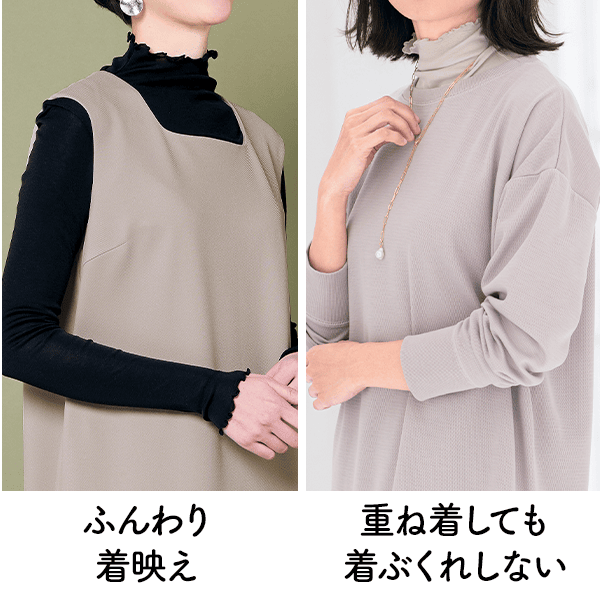 - 重ね着しても着ぶくれしない