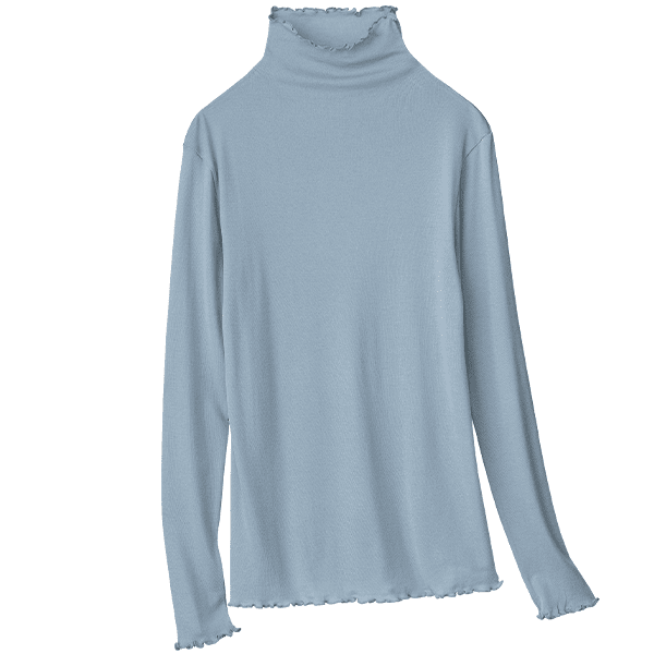 - 綿レーヨン素材が肌に優しく、軽やかでふんわりとした着心地で、着用していて快適です。ピッタリしすぎない生地感なので、ストレス無く使用できます。ハイネックと長袖で首元や腕をカバーしてくれて暖かいですし、端のメロー始末がかわいいので、重ね着をして、チラっと見せたりしておしゃれに使えそうです。