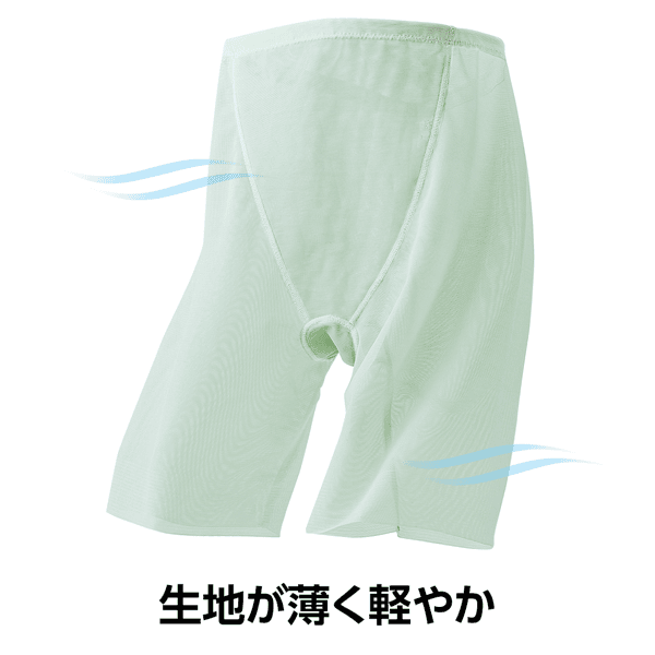 ALLメッシュですーっと風が通る!通気性抜群なので不快なムレや暑さを感じにくい夏仕様ガードル。薄手のパワーネットで気になるお腹をおさえて、ムレやすいヒップは裏あてなしの1枚仕様です。