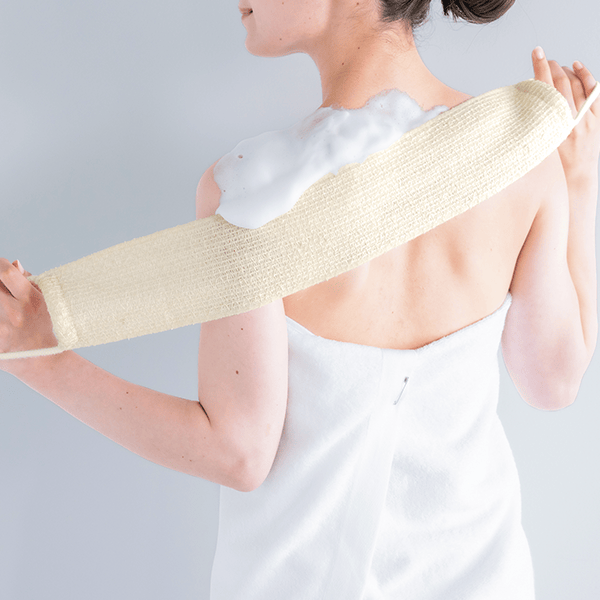 • 左右に付いたヒモで背中も洗いやすい