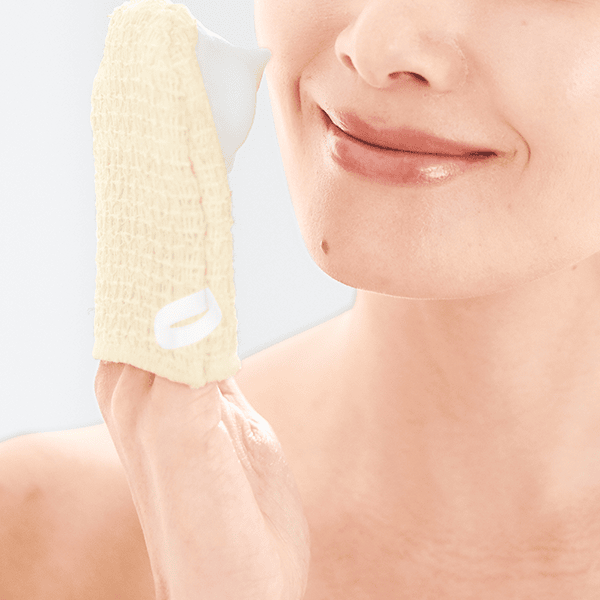 保湿成分をたっぷり含んだ希少なキビソで肌にやさしく洗えるフェイスミトン