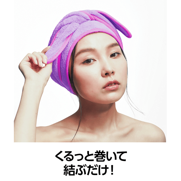 お風呂上がりの髪の毛にくるっと巻いて結ぶだけでドライヤーを時短できる大判ヘアターバンです。