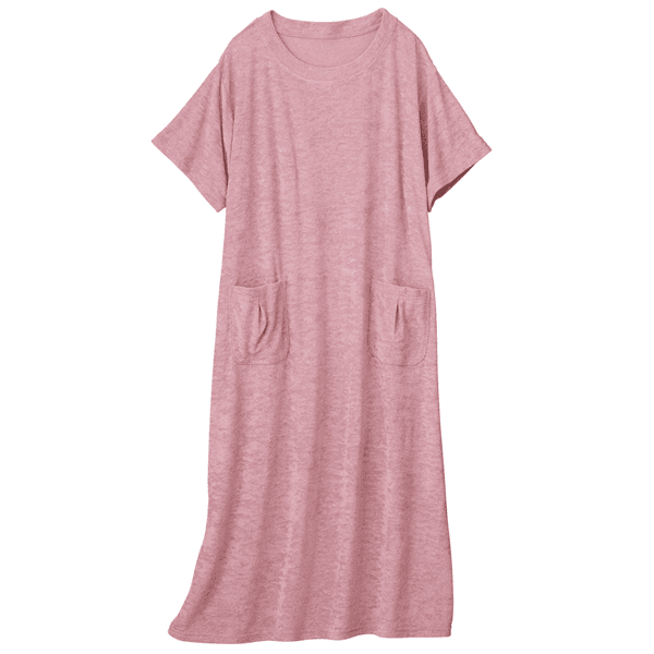やわらかなパイル素材で肌ざわりがよく、汗ばむ季節のリラックスタイムに最適なワンピースタイプのルームウェア。身体のラインをひろわないゆったり設計とほどよいストレッチでラクに着られます。