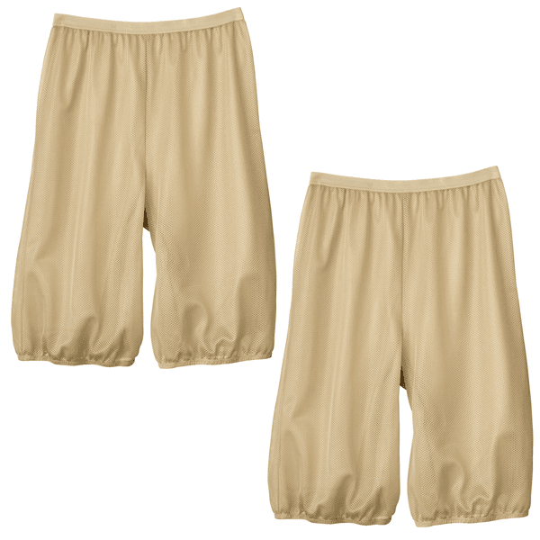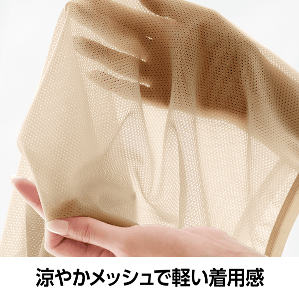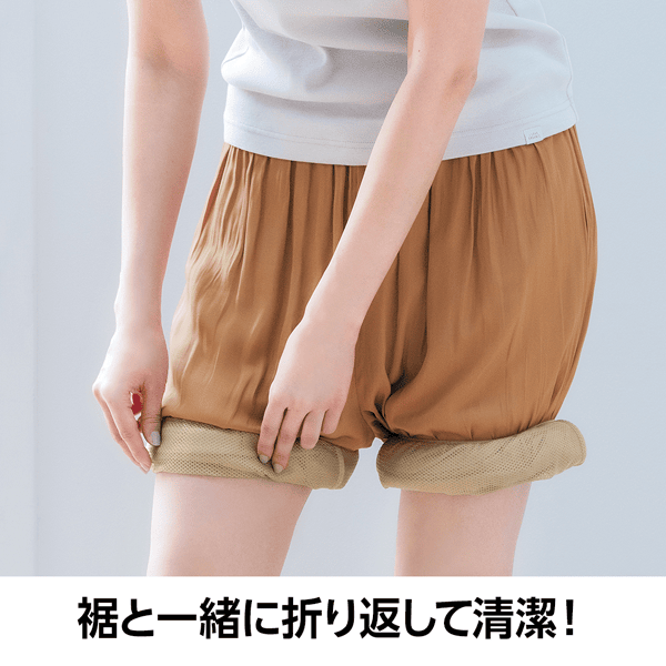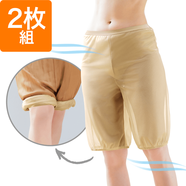 夏のボトムの中のベタつきや太ももの汗をサラッと解決する、速乾メッシュのペチパンツ。薄くてもたつかないのでアウターのシルエットもきれい。重ね着が苦手な方でも、着ている方が快適に過ごせます。