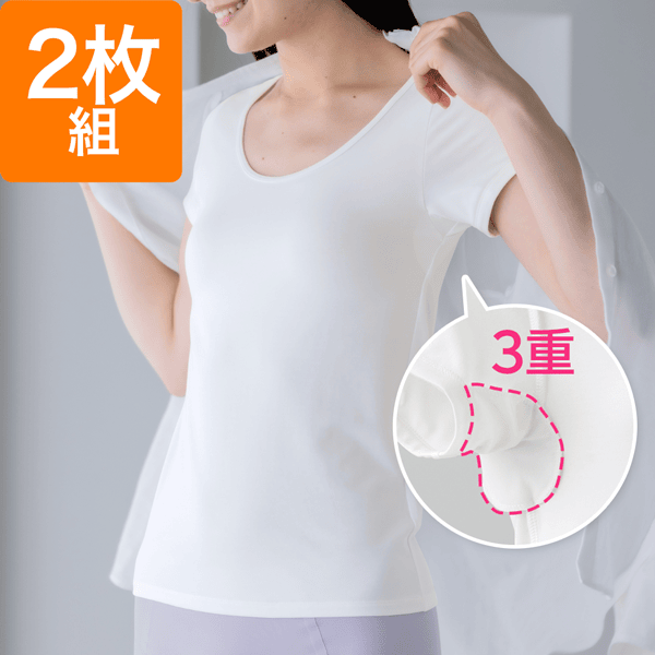 3重構造の汗取りパッドが脇汗をしっかり吸収!2枚組でお得な汗取りインナー