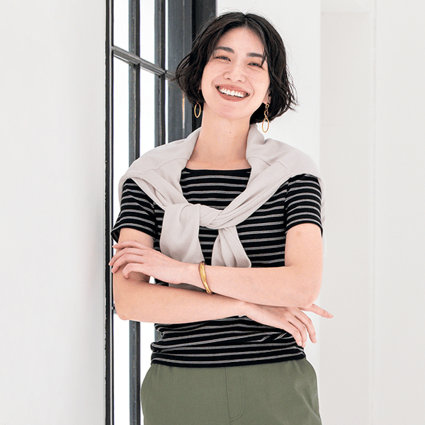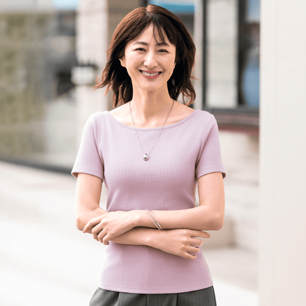ストレスフリーな感覚、これだ!!と着た瞬間感じました。アンダー周りのごわつき感もまったくなく、、シームレスな着心地がとても快適です。普段、商品によってはSサイズを着ることもあるのですが、この“ベアフィールブラTシャツ・ボートネック”は、Mサイズを選びます。カップのおさまり・ノンストレスさをより感じるのがMサイズでした。ほどよく伸縮性があるストレッチリブがきれいなシルエットを演出してくれるので、ボトムも選ばず、ラクできれいなコーデが簡単に叶います。