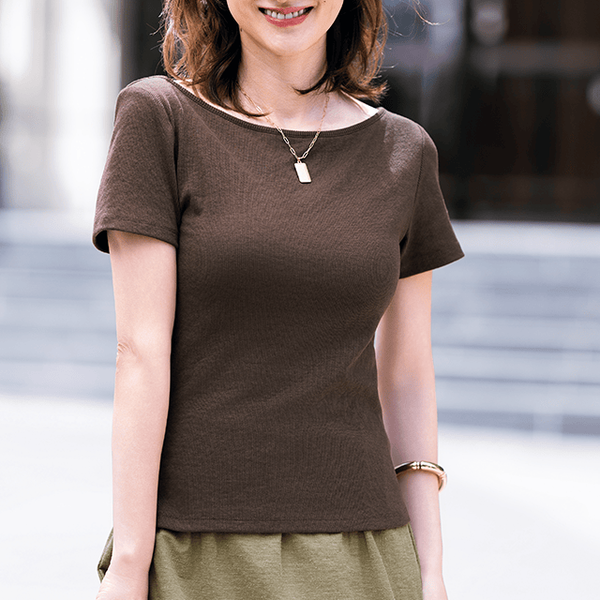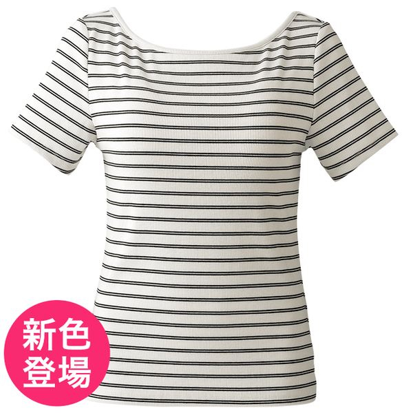 - ブラのストラップを気にせず着られる、広めのボートネックタイプ