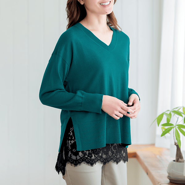 - 肌ざわりのよいカットソー素材で重ねてもゴワつきや着ぶくれ感なし
