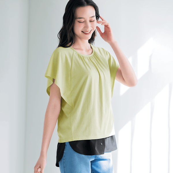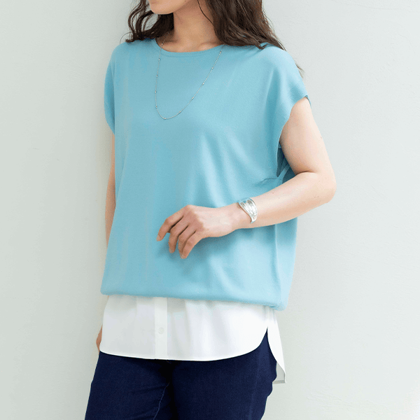 - 肌ざわりのよいカットソー素材で重ねてもゴワつきや着ぶくれ感なし