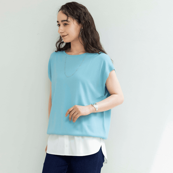 - 肌ざわりのよいカットソー素材で重ねてもゴワつきや着ぶくれ感なし