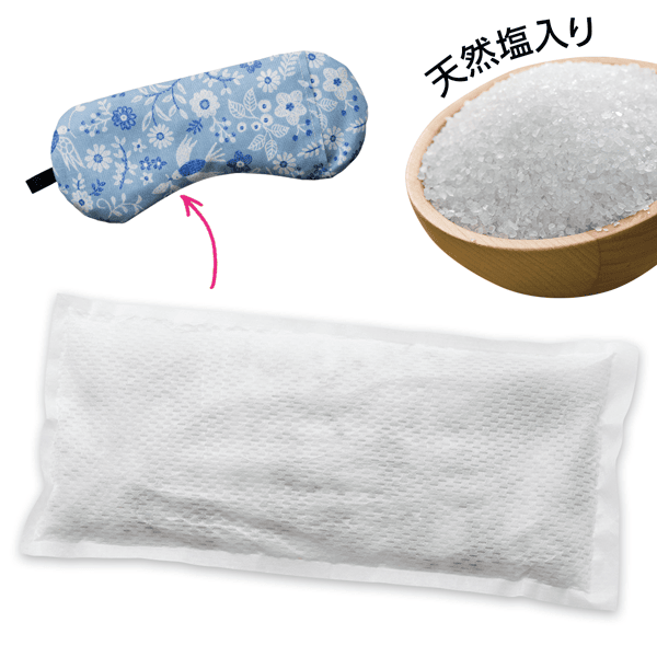 - 塩と共に緑豆入りで温めても冷やしても使えるアイピロー