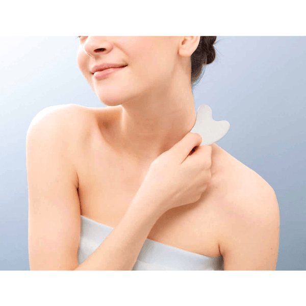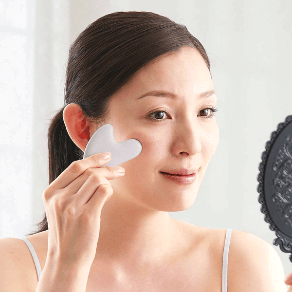 ひんやりとすべりがよく肌にフィットする磁器製のかっさ。3つの曲線で細かなパーツもマッサージしやすく、顔だけでなくボディにも使えます。ケース付きで携帯や保管にも便利。