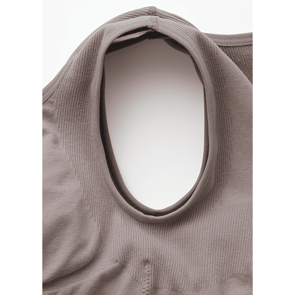 - もちもちとした伸縮性のある素材で、肌触りがとても心地よいです。サポート編みの部分は身体にやさしくフィットして支えてくれるので、美しい姿勢を意識しながらも、リラックスした気分で着用できました。シンプルなデザインのタンクトップなので、日常生活の中でも使い回しやすいと思います。