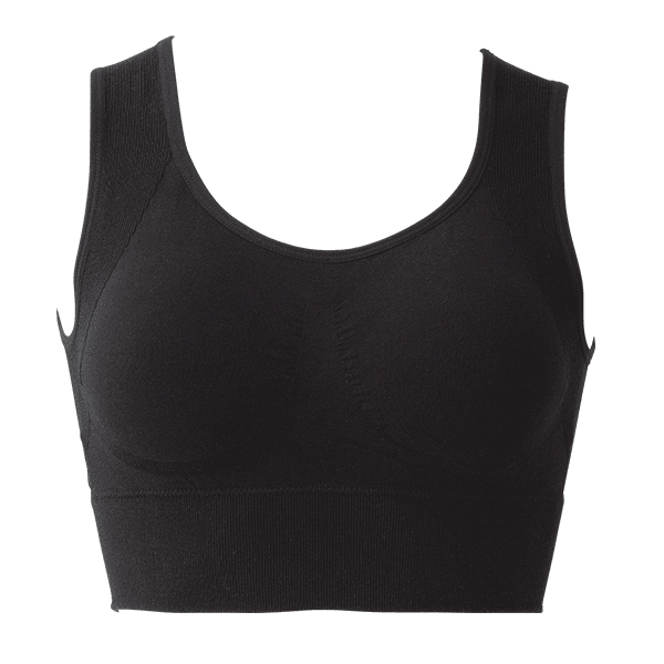 - もちもちして伸縮性がある素材で、肌触りがとても気持ちがいいです。サポート編み部分は身体に沿ってやさしく支えてくれる感じなので、美姿勢への意識を高めつつ、リラックス気分で着用できました。バスト部分も自然にフィットしてずれにくく、かなり快適な着用感です。シンプルなデザインで普段使いにもよく、スポーツに、就寝時に、様々な場面で活躍してくれそうだと思いました。